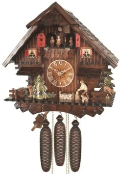 Coucou Mécanique 8 Jours Musical Bûcheron Roue Du Moulin 35 Cm