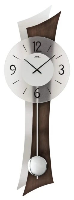 AMS Horloge Murale à Balancier En Bois Et Aluminium Incurvé