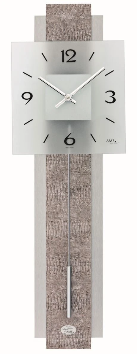 L’alliage des matériaux, le verre, l’aluminium et l’imitation cuir ainsi que ses formes rectilignes font de ce modèle, une horloge murale à balancier inscrite résolument dans la tendance moderne.