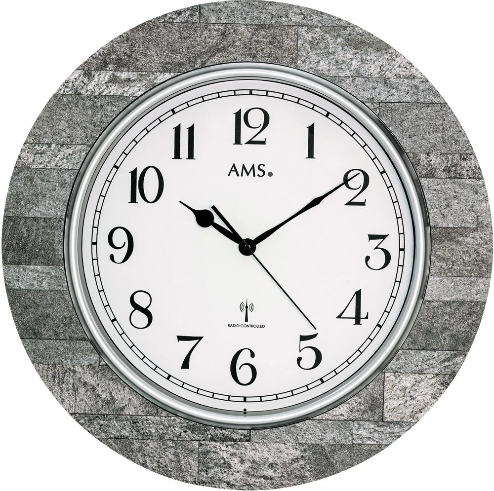 Horloge murale radio-pilotée ronde façon bois