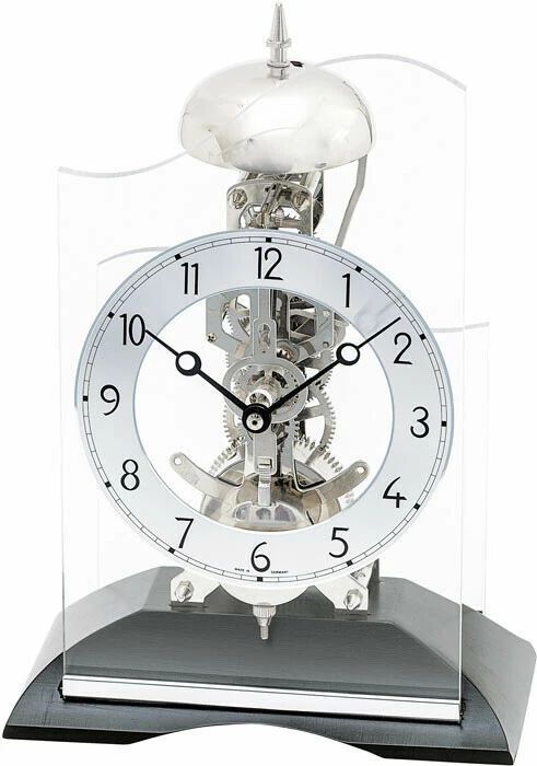 Avec son cadran ajouré et ses aiguilles fines, ce modèle de pendule à poser squelette vous accompagnera dans votre quotidien en vous donnant l’heure discrètement. Toutes les heures, cette pendule mécanique retentira d’un coup pour vous indiquer le passage de l’heure pleine. Ornée de fines aiguilles noires et fièrement disposée sur son socle en bois, ces détails de réalisation confèrent à cette pendule une allure classique et élégante. Le cadran est présenté sur une vitre de protection, elle-même fixée sur ce socle.