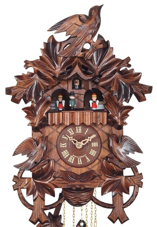 Quand il chante, les deux portes s’ouvrent et le coucou sort. Chant du coucou très agréable avec écho de la forêt. Mélodie après le chant du coucou (boîte à musique).