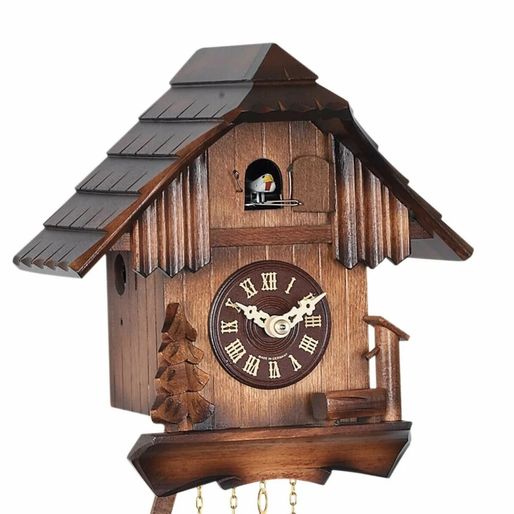 Véritable coucou de la Forêt Noire, réalisé en bois de tilleul et équipé d’un mouvement à quartz. Les sculptures et peintures sont réalisées à la main en Forêt Noire (Allemagne). Un certificat d’authenticité sera d’ailleurs livré avec votre coucou.