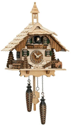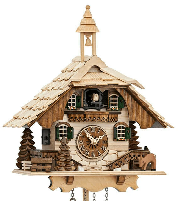 Quand il chante, les deux portes s’ouvrent et le coucou sort. Chant du coucou très agréable avec écho de la forêt.