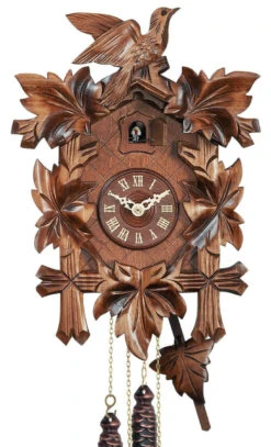 Equipé d’un mouvement à quartz fiable de Forêt Noire, toutes les sculptures et les peintures de ce coucou sont réalisées à la main.