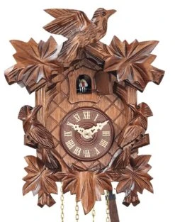 Un des modèles traditionnels les plus appréciés de nos clients : le coucou avec des décors d’oiseaux et de feuilles d’érable qui évoquent la forêt. Sculpté à la main, nos artisans prennent le temps de réalisation d’un travail de qualité, aussi bien esthétique que technique.