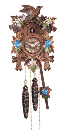 Ce coucou mécanique reste fidèle à une tradition plus que centenaire de l’horlogerie de Forêt Noire.
