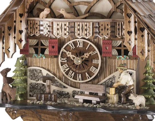 Fiez vous à la qualité de réalisation des coucous mécaniques fabriqués en Forêt Noire, entièrement réalisé à la main. Le contraste des couleurs rehaussera la décoration de votre intérieur et vous serez subjugués de voir l’animation des petits personnages au rythme du passage des heures de la journée.