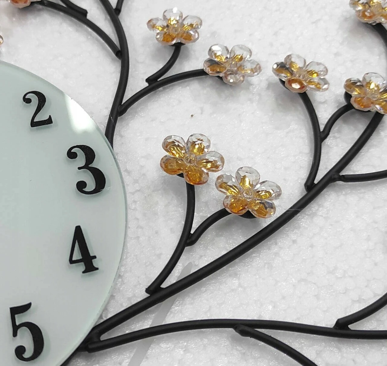 Elégante et très décorative, cette horloge murale apportera une touche moderne dans votre intérieur grâce à son support en métal rehaussé de ses brillants en verre en forme de fleurs.