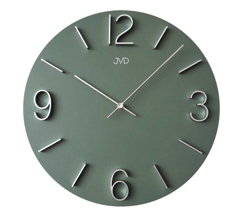 - Cadran en bois gris, chiffres arabes et index dorés