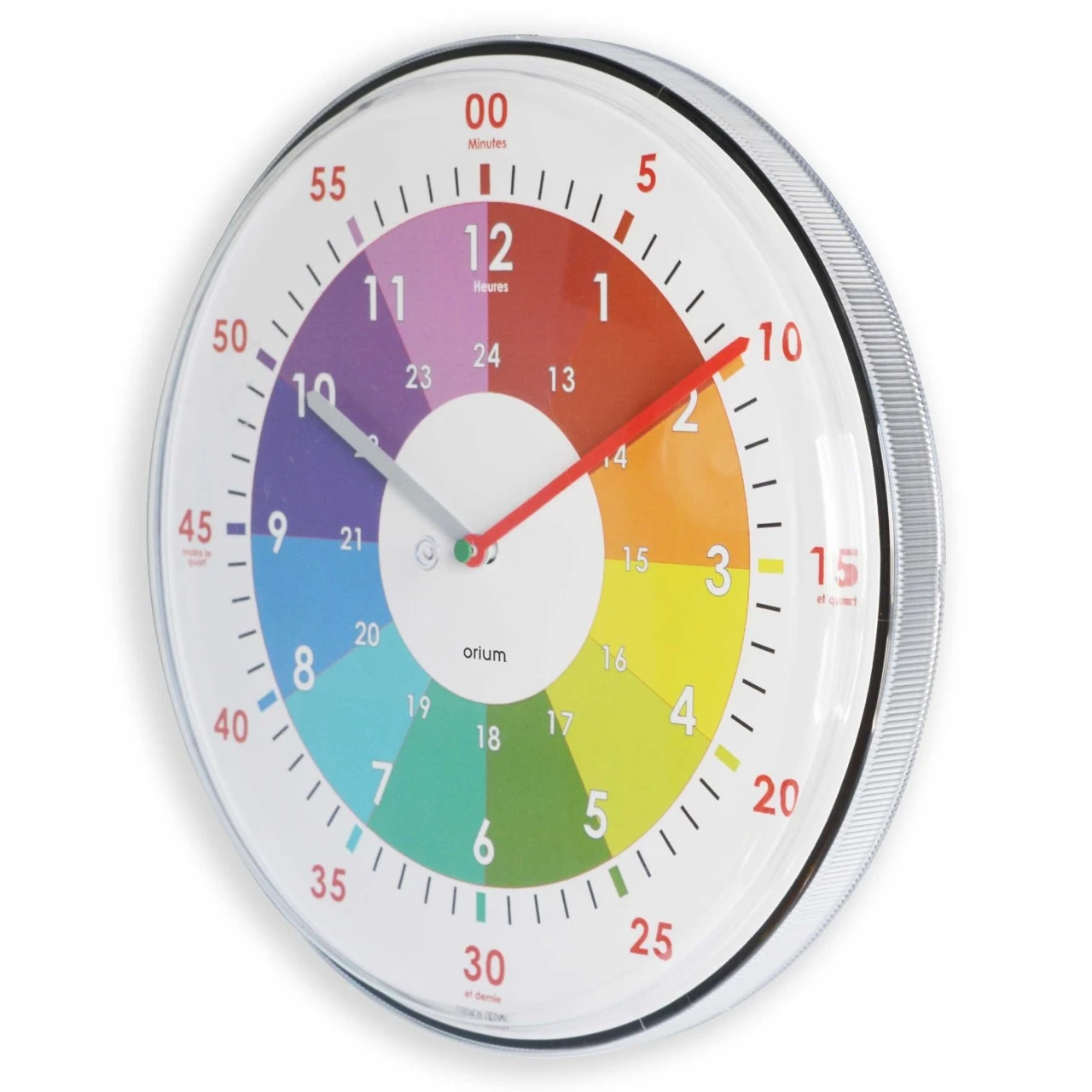 D’un style gai et ludique, cette pendule murale pour enfants apprendra Ă lire l’heure Ă vos bout’choux avec pĂ©dagogie et dĂ©corera leur chambre tout en couleurs !