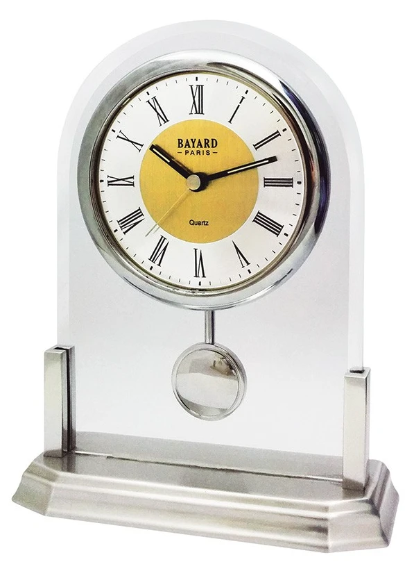 Avec son verre arrondi et son support en métal, cette pendule se tiendra fiÚrement et avec élégance sur une étagÚre ou dans la vitrine de votre séjour.