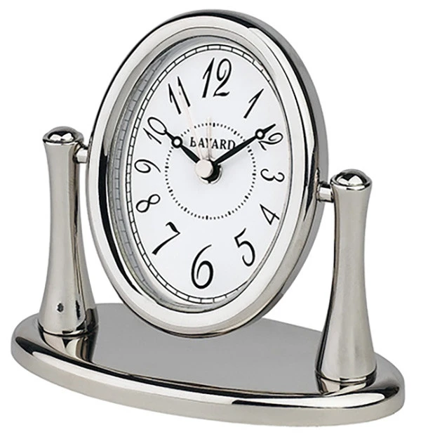 Bayard, la marque incontournable des réveils, vous propose un modèle en métal argenté à cadran pivotant.
