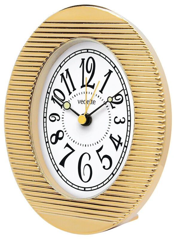 Ce ravissant réveil doré sera du plus bel effet sur votre table de chevet. Par sa forme ovale et son style matelassé, le look de ce modèle vintage trônera fièrement dans votre chambre et vous réveillera en douceur.