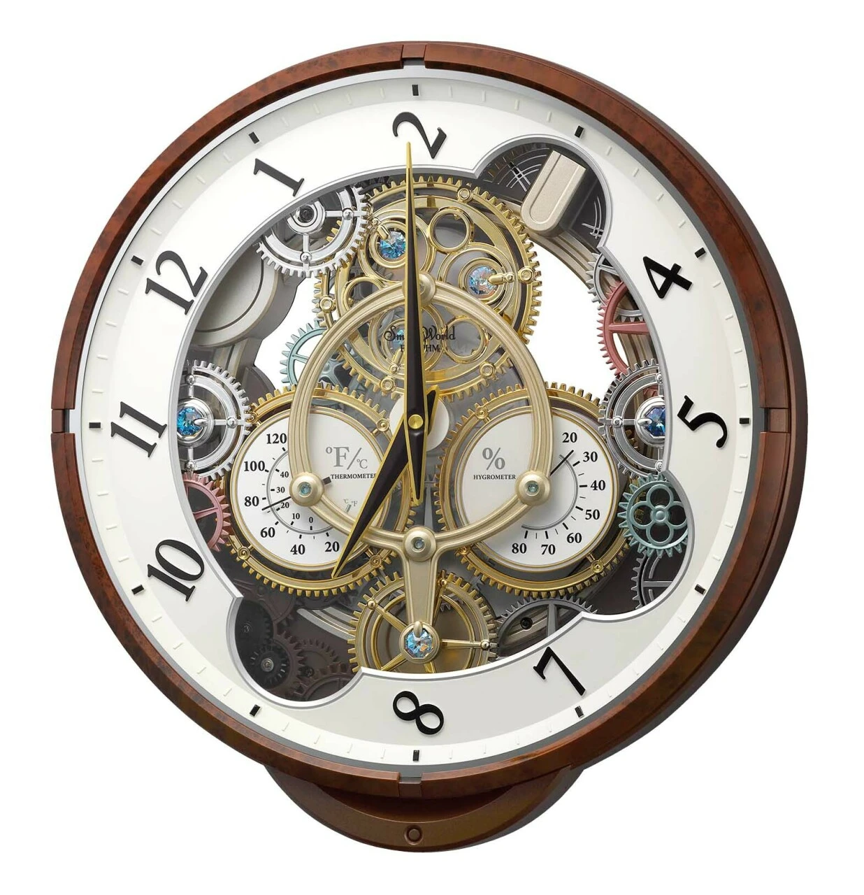 Avec son rouage apparent, vous serez transportés par son animation : toutes les heures, le cadran tourne et la pendule sonne. Vous pourrez régler le volume de la sonnerie ainsi que choisir la mélodie qui vous conviendra le mieux. La nuit, pour plus de tranquillité, la pendule bascule en mode « silence » grâce à son capteur d’obscurité.