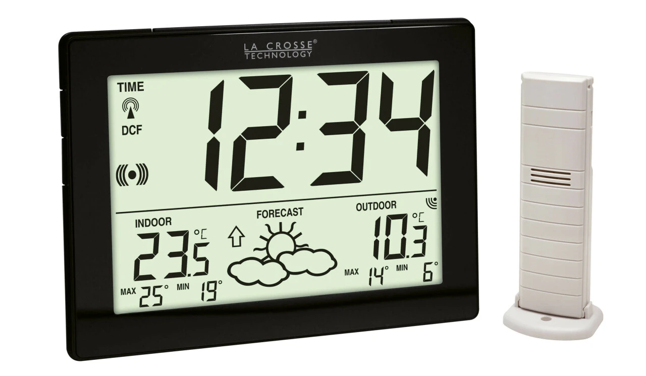 Avec son cadran de 10 cm de hauteur, vous aurez une lisibilité idéale à plusieurs mètres des informations fournies par la station météo : heure, date, température, intérieures et extérieures avec les minimales et maximales, et les prévisions météo par icônes.